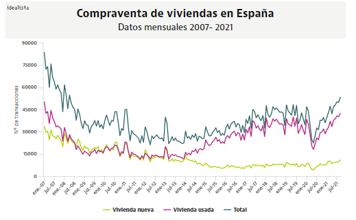 El mercado de la vivienda sigue mostrando datos de recuperación tras el mercado de 2020, y sobre todo, con un gran giro de 360º con unos datos de compraventa que no se registraban desde el boom inmobiliario.