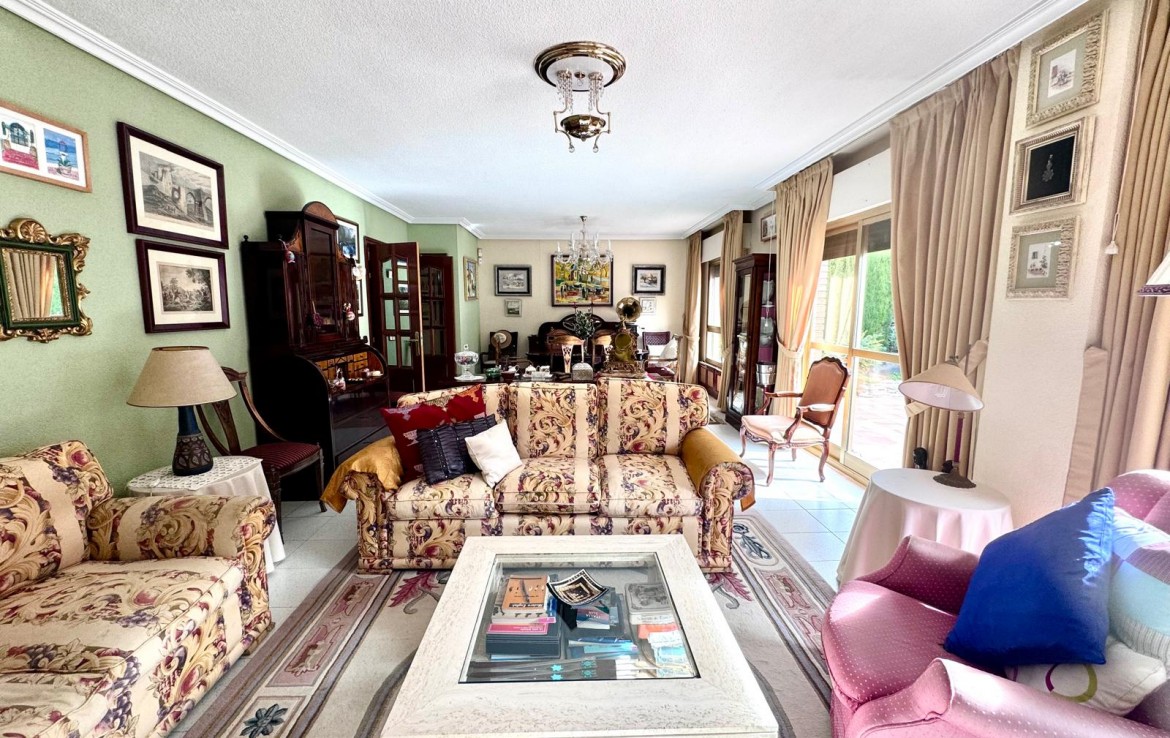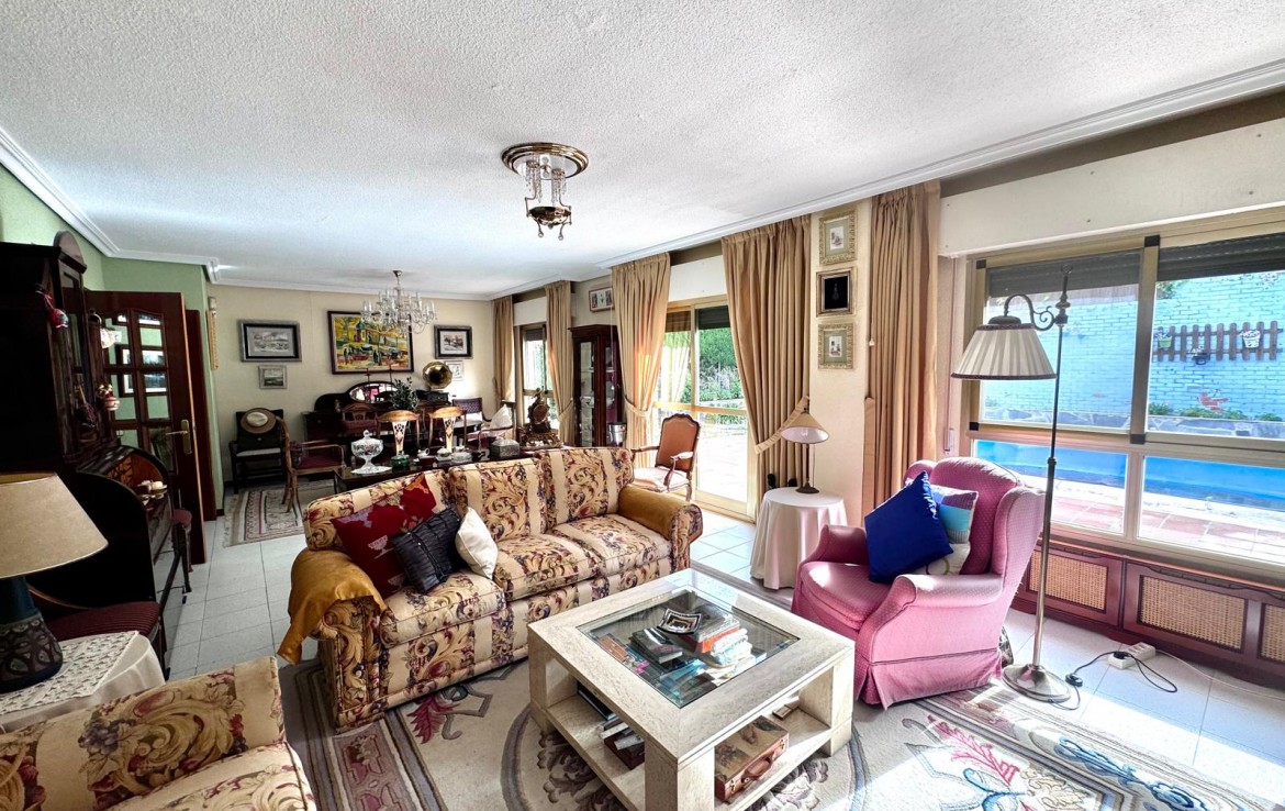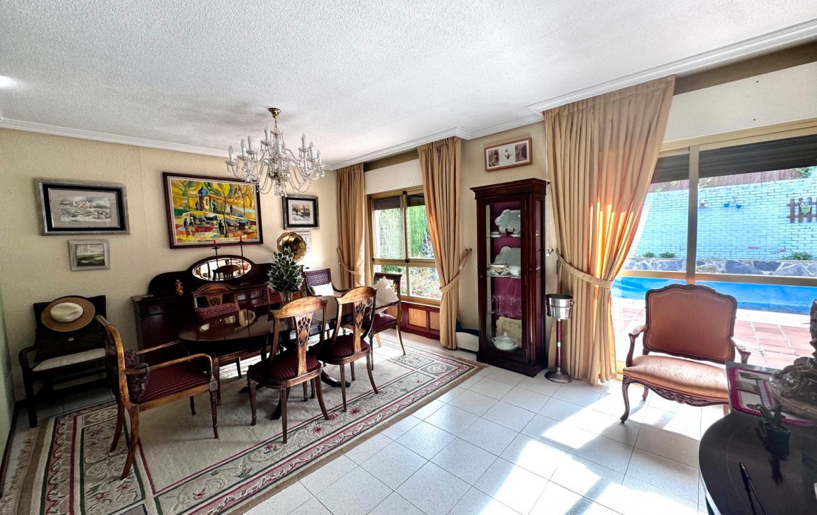 A mano izquierda, tenemos una amplio salón con dos ambientes, uno de comedor y otro de sala de estar. El salón tiene muchísima luz porque da al lado del jardín donde se ubica piscina.