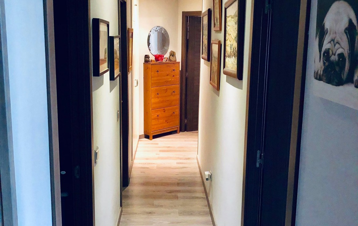 Al acceder a través de la puerta principal, nos encontramos ante un pasillo que sirve de nexo con todas las estancias de la vivienda: